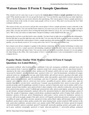 Best WATSON GLASER II FORM E SAMPLE QUESTIONS Ebook Read Online EBook Sites No Sign Up - As we know, Read Online EBook is a great way to spend leisure time. Almost every month, there are new Audio Book being released and there are numerous brand new Audio Book as well.